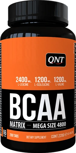 QNT Matrix BCAA 4800 är ett praktiskt och effektivt BCAA-tillskott i tablettform. Varje daglig dos (6 tabletter) ger 4800 mg BCAA i det klassiska 2:1:1-förhållandet mellan L-leucin, L-isoleucin och L-valin, berikat med vitamin B6. Formulan stödjer muskelåterhämtning, tillväxt och minskad trötthet, vilket gör den perfekt för både elitidrottare och seriösa motionärer.