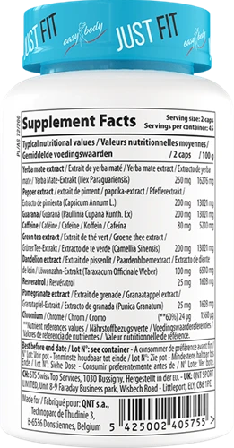 • Nyckelingredienser: Yerba Mate, Guarana + Koffein, Grönt te-extrakt, Maskrosextrakt, Krom
