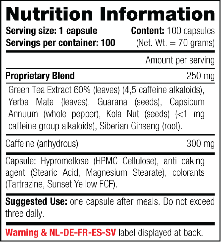 - Grönt te, yerba mate, guarana och kolanöt – stödjer fettförbränning och prestationsförmåga