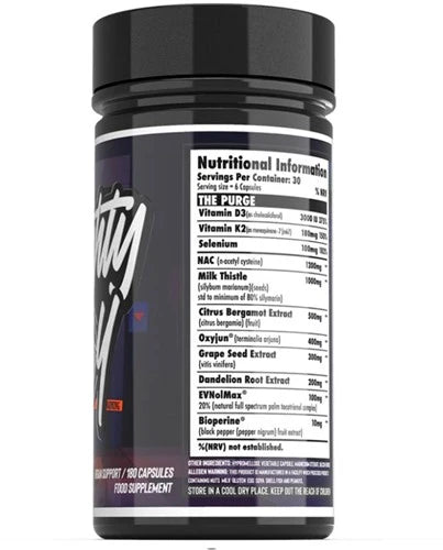 Med sin kraftfulla blandning sticker Purge ut på marknaden. Den innehåller höga doser som 1200 mg NAC, 3000 IE vitamin D3 och 1000 mg mjölktistel, samt patenterade ingredienser som EVNoIMAX® och OxyJun®. Det gör formulan till ett pålitligt stöd för leverhälsa, energi och långsiktigt välbefinnande.