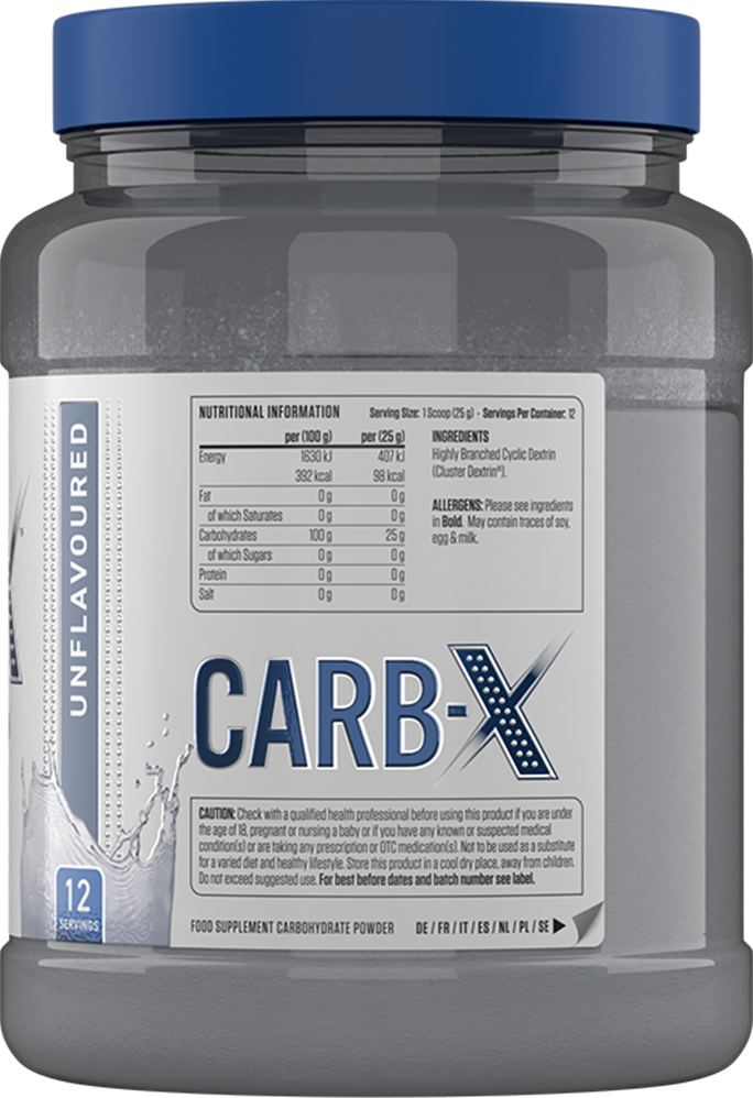 Fyll på din träning med Applied Nutrition Carb-X! Varje portion innehåller hela 24 gram av 100 % cyklisk dekstrin-kolhydrater. Produkten är fri från socker, fett och gluten samt passar veganer – den perfekta energikällan för ditt träningspass.