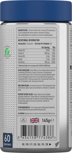 Ta två kapslar dagligen, helst 20 minuter före en måltid rik på kolhydrater. Alternativt kan kapslarna tas 20 minuter före träning om du använder en kolhydratrik intra-workout.