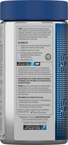 Applied Nutrition i-Drive är ett premiumtillskott designat för att stötta en aktiv livsstil och optimera glukosupptag. Formulan är berikad med vitaminerna B6, C och D3 som stödjer energinivåer, immunförsvar och muskelfunktion. Med tillsatt koppar för nervsystemets hälsa och krom som bidrar till normal energi- och proteinmetabolism är i-Drive ett smart val för idrottare och träningsentusiaster.