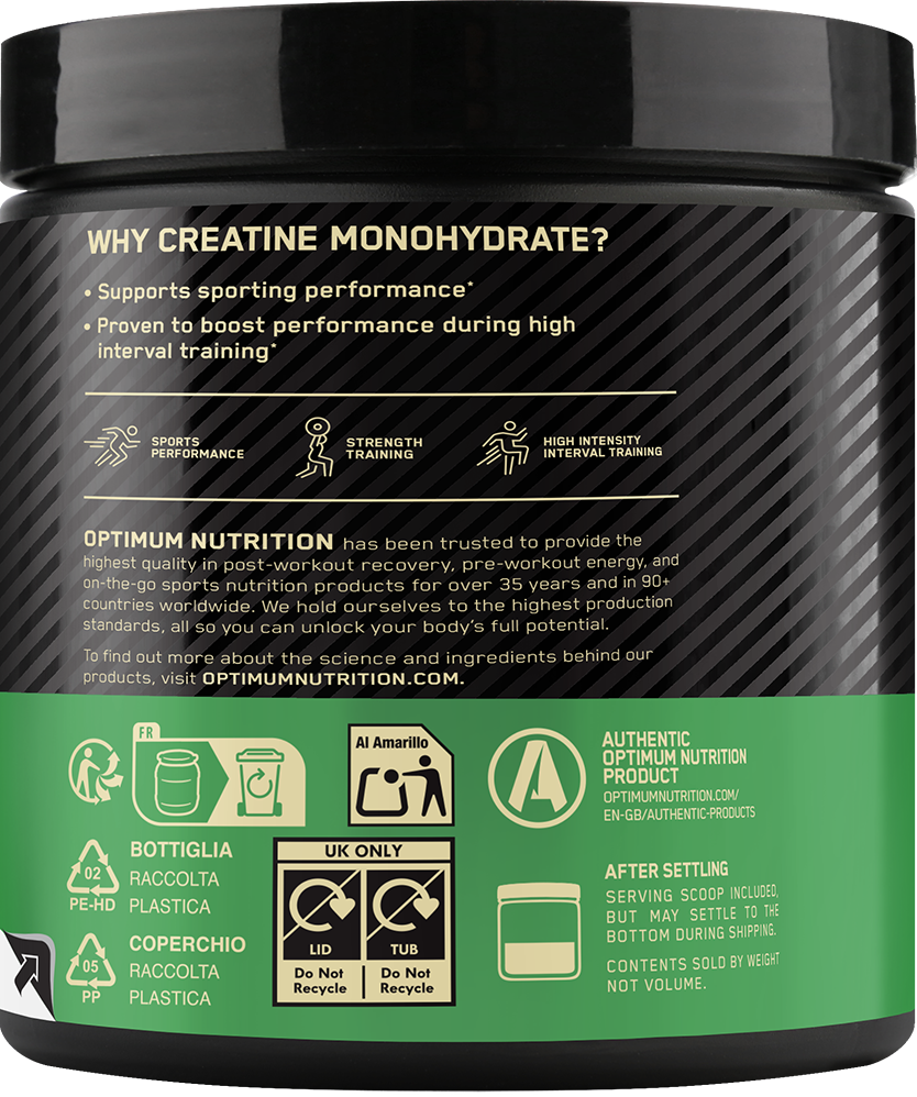 Optimum Nutrition Micronised Creatine Powder ger dig 5 g av 99,9 % rent kreatinmonohydrat per portion – en av de mest beprövade och effektiva ingredienserna inom sportnutrition. Kreatin hjälper till att öka muskelstyrka, uthållighet och prestation vid upprepade, kortvariga och intensiva träningspass. Tack vare den mikroniserade formen blandas pulvret enkelt med valfri dryck utan smak eller lukt, vilket gör det till ett flexibelt tillskott för alla typer av idrottare.