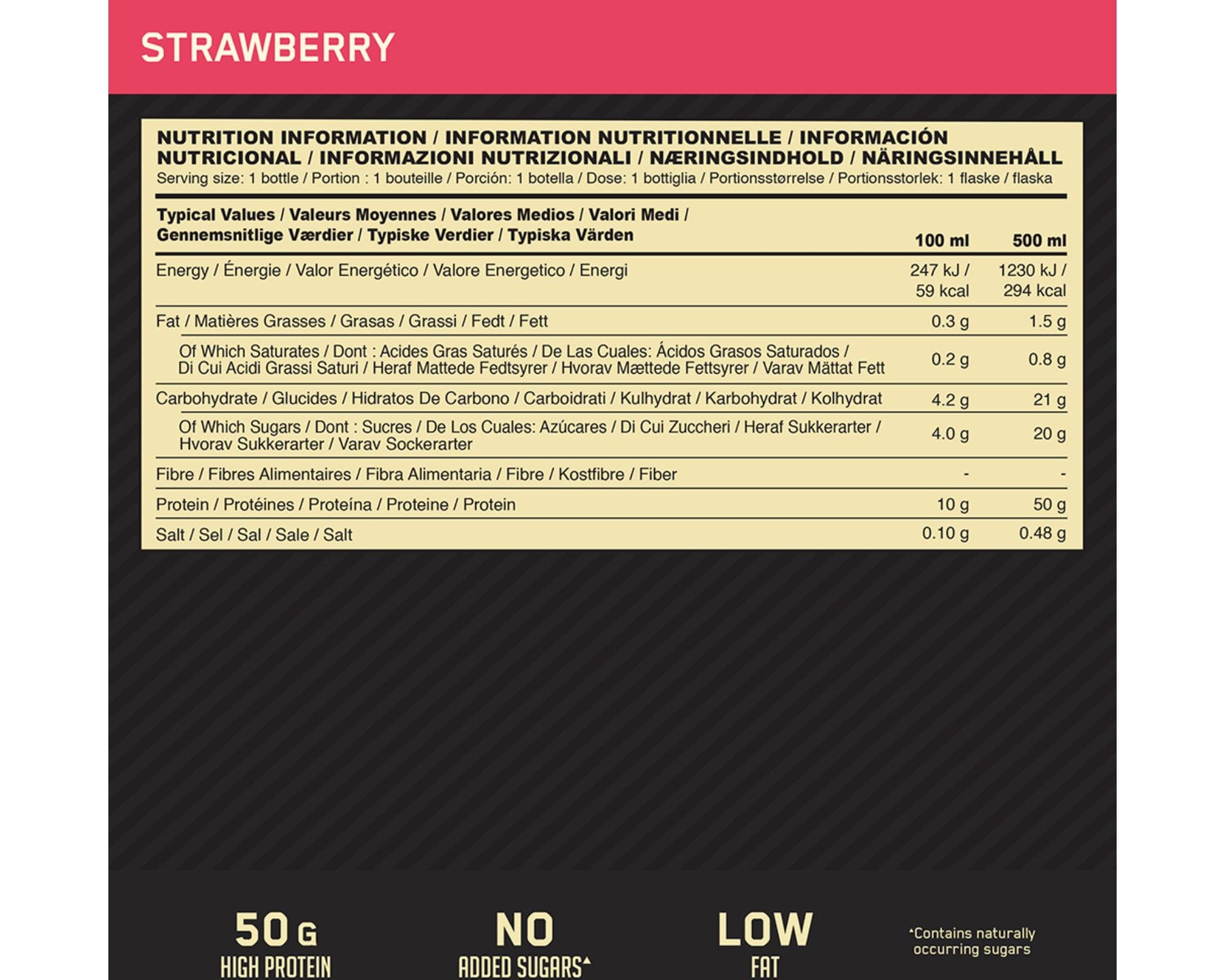 Optimum Nutrition High Protein Shake gör det enkelt att fylla på med 50 g protein i en krämig, färdigblandad dryck. Låg fetthalt, utan tillsatt socker och inga artificiella färgämnen – perfekt för återhämtning och en aktiv vardag.