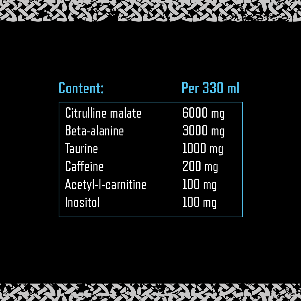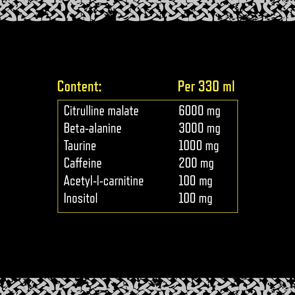 Viking Power PWO Energy Drink är en färdigblandad, kolsyrad pre-workout på burk som levererar brutalt hög energi och pump. Med 200 mg koffein, 6000 mg citrullinmalat, 3000 mg beta-alanin och 1000 mg taurin per burk får du maximal effekt utan att behöva blanda pulver – bara öppna, drick och kör!