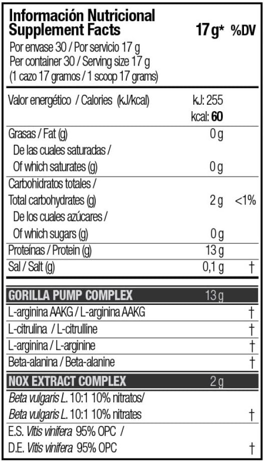 - 13 g Gorilla Pump Complex per portion för brutala muskelpumpar.