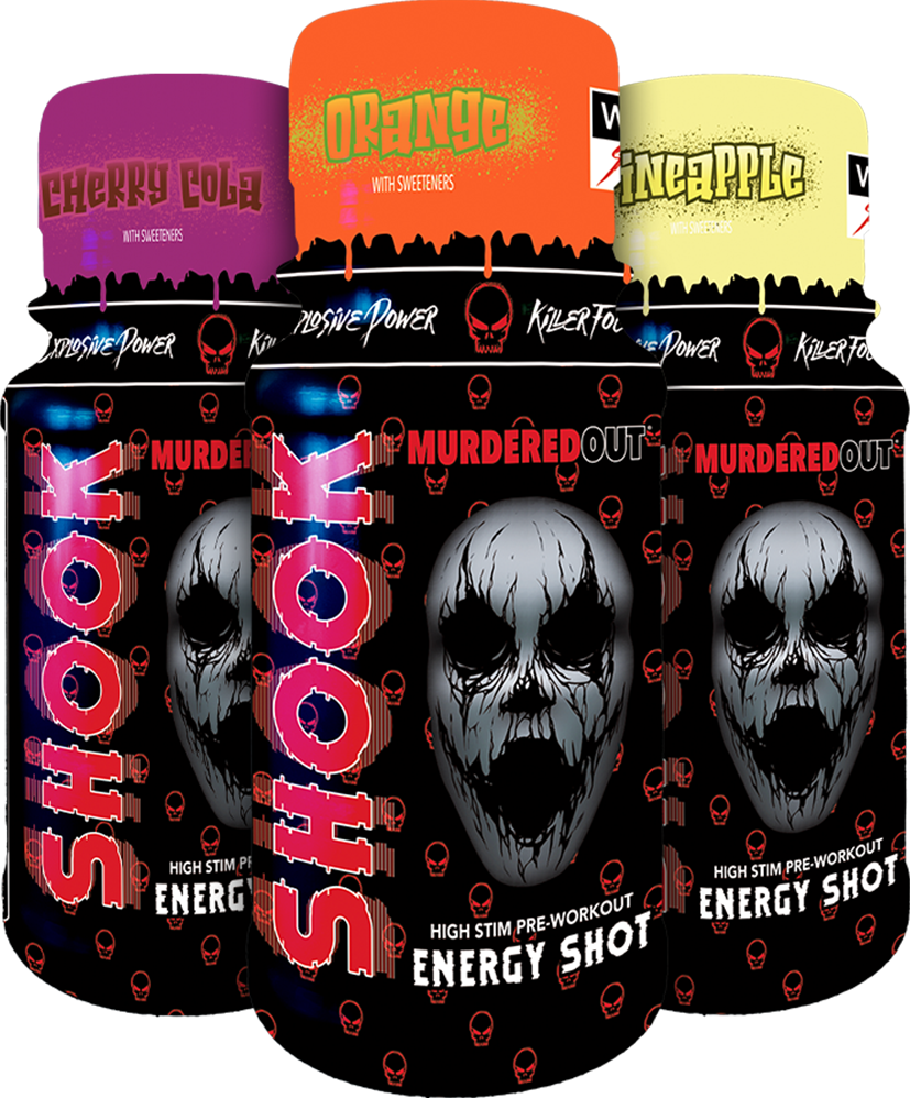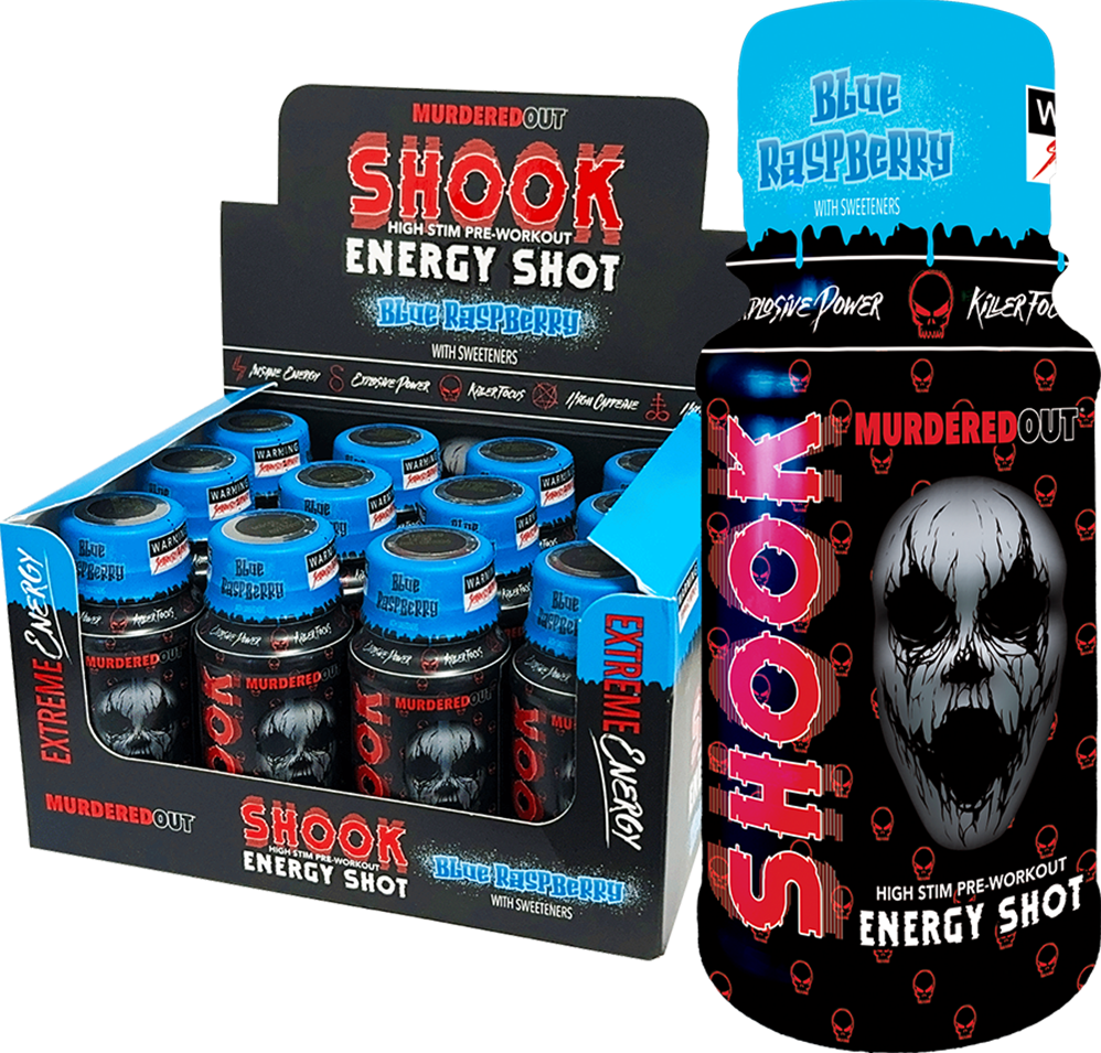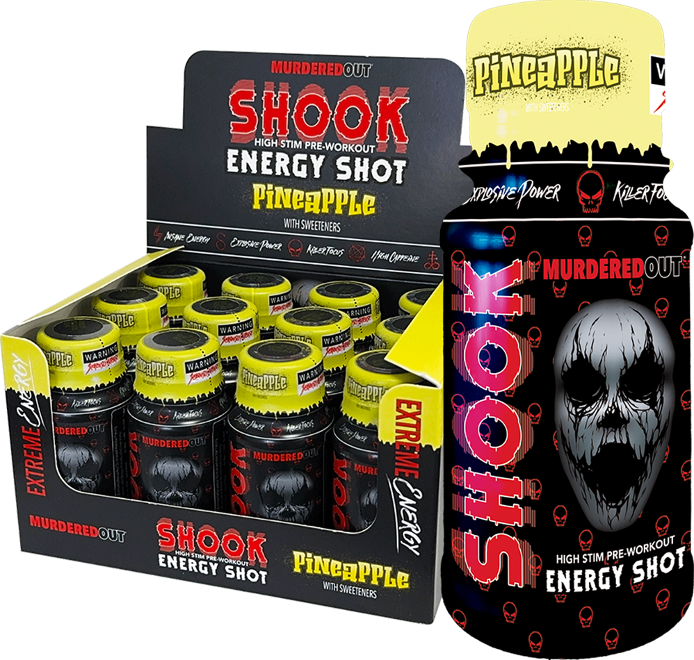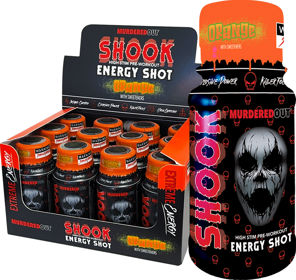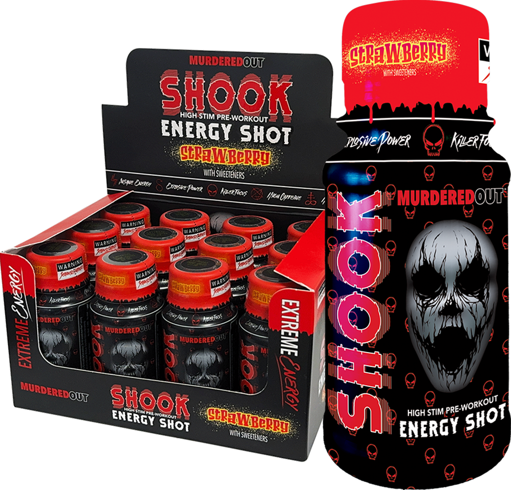 Murdered Out SHOOK Energy Shots är utvecklade för hårt tränande atleter som kräver brutal energi och fokus. Med 250 mg koffein, 3000 mg beta-alanin och 2000 mg L-arginin per shot får du en explosiv pre-workout i färdigblandat format – redo att tas direkt ur flaskan.