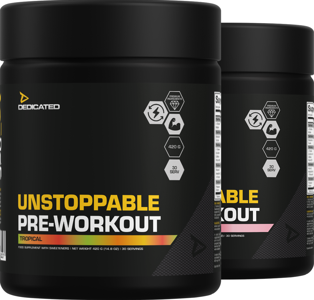 UNSTOPPABLE från Dedicated Nutrition är en avancerad pre-workout designad för dedikerade atleter. Med kliniskt doserade ingredienser som L-Citrulline, Beta-Alanin och patenterade tillskott som Zynamite™ och AstraGin® får du maximal pump, fokus och uthållighet – utan krascher efter träningen.