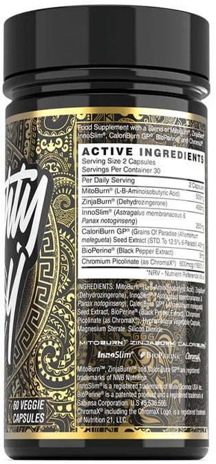 - Aktiva ingredienser per dos: 500 mg MitoBurn®, ZinjaBurn®, InnoSlim®, CaloriBurn GP®, BioPerine®
