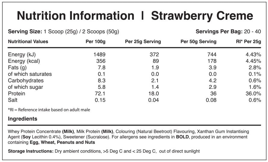 Med en hög proteinhalt på 36 g per 50 g servering maximerar Warrior Whey muskelreparation och tillväxt. Dess låga sockerhalt gör det till ett rent och effektivt tillskott. Kombinationen av snabbabsorberande vassleprotein och smakrika alternativ gör denna shake både effektiv och njutbar – perfekt för lean gains eller som en klassisk proteinshake.