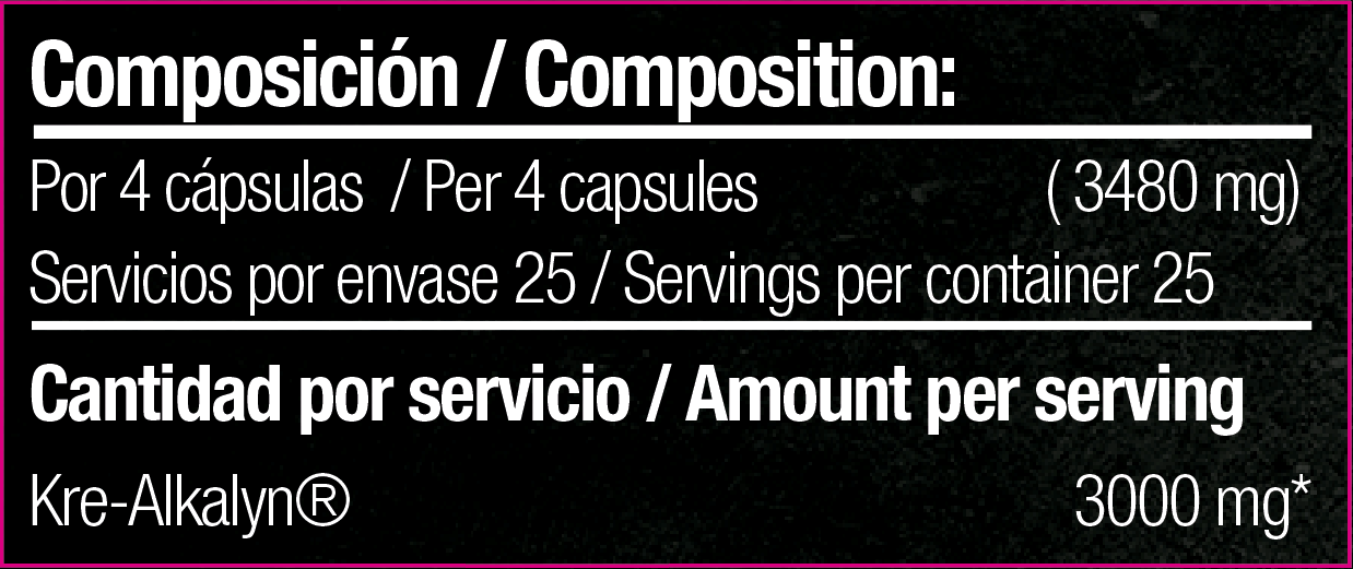 - Innehåll per dagsdos: 3000 mg Kre-Alkalyn®